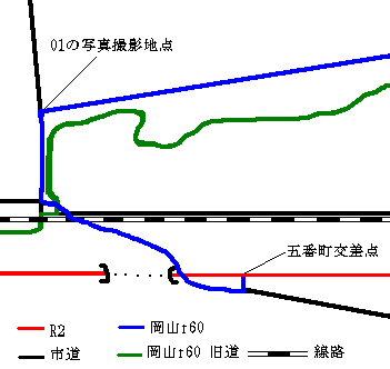 06 市道との交差点。さて問題です。岡山r60は左右どっちでしょう? (正解は止まれがある右。)